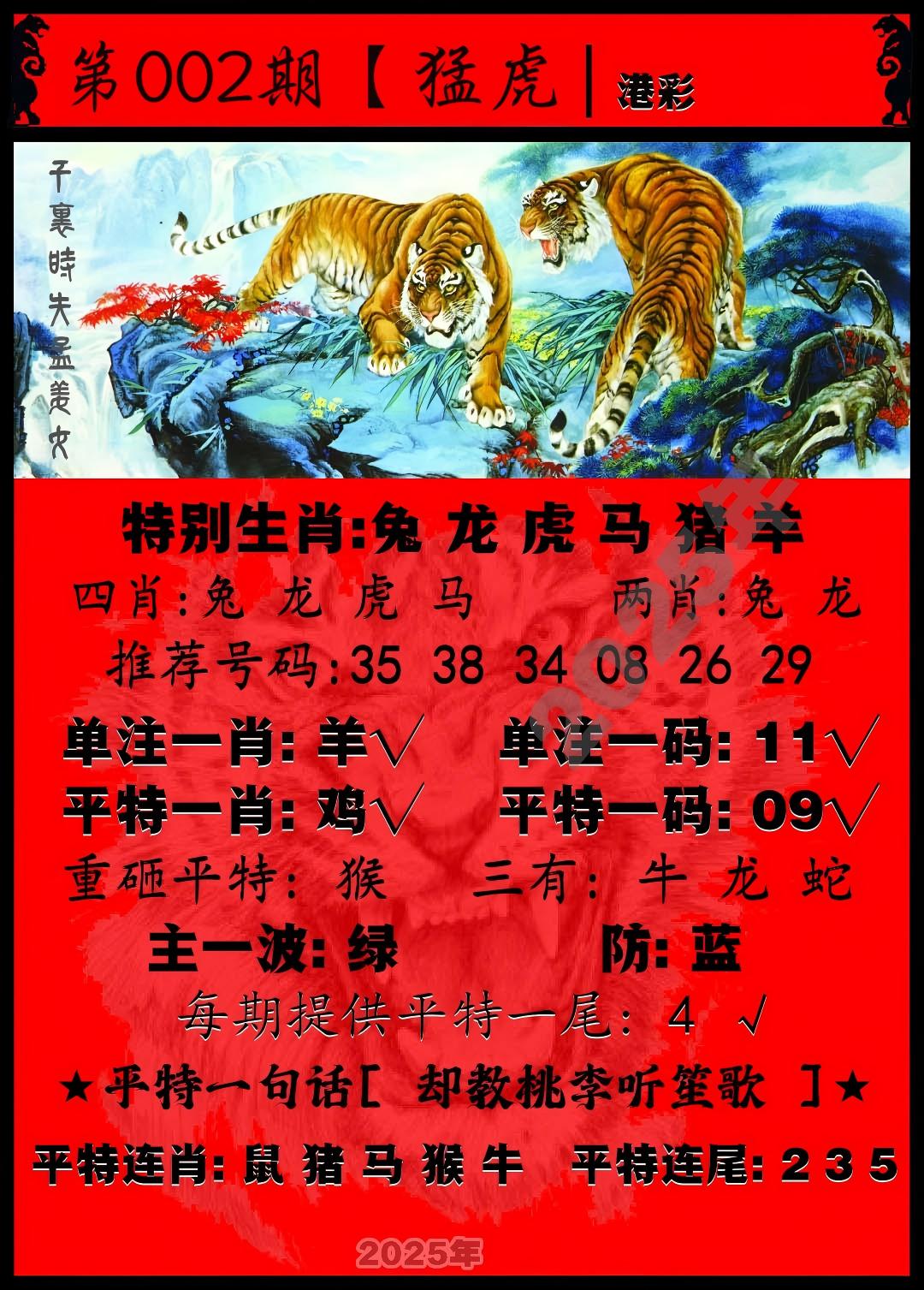 2025359期【四肖四码】开虎28准 【狗08.蛇25.羊35.鼠30】 |