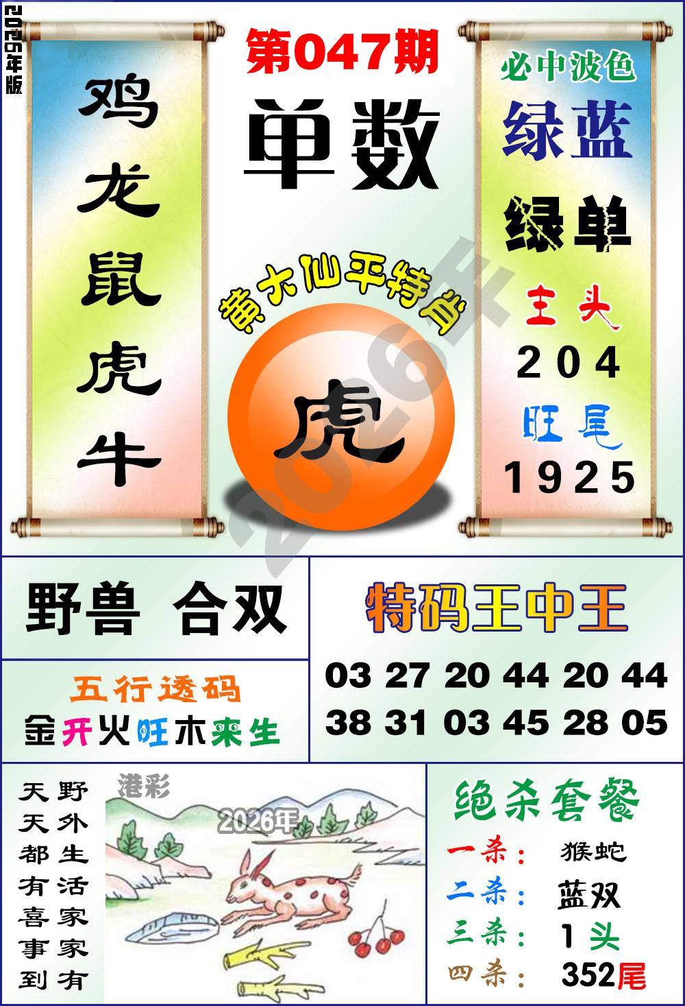 黄大仙平特肖